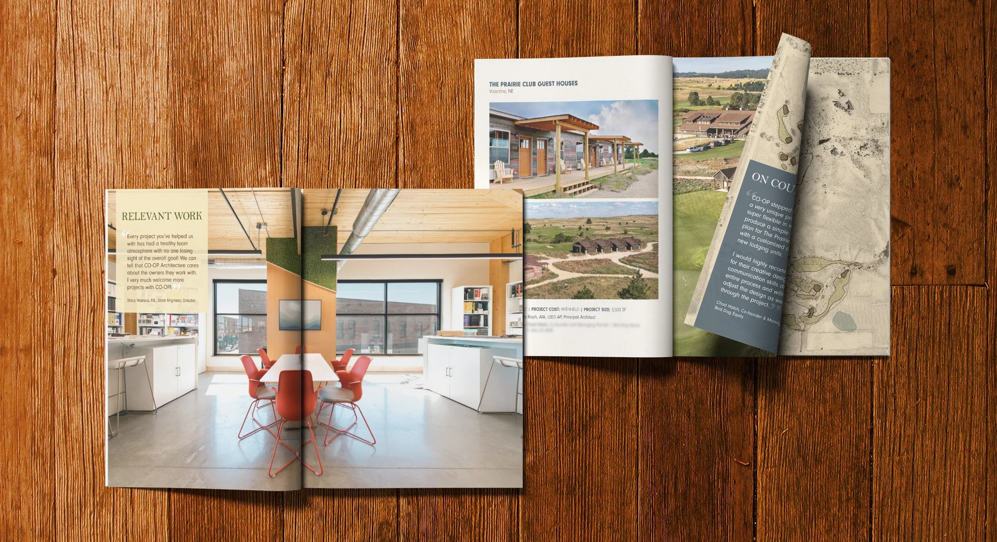 The first was for a top-tier, destination golf course named Mapleton. Competition was tight, but the architects developed dynamic designs rooted in the site's history and found ways to cut construction time. We matched the Scandinavian heritage of the area's early settlers—and the aesthetic of the design concepts—with a clean, sharp proposal layout. The proposal we created for Mapleton is my favorite based on both the final product and the collaborative effort behind it.
